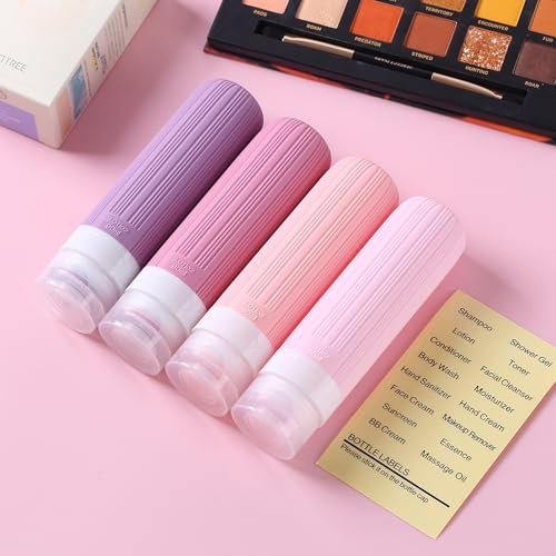 【TSA Approved and Portable】4 Pack 3oz silicone bottle is a TSA approved Capacity that allows for unobstructed boarding. Come with a zipper sealed transparent wash bag, it saves much space when traveling and carry your daily-used shampoo, conditioner, body wash, lotion, shower gel, hand sanitize etc.