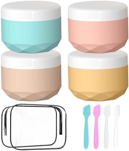 ✈【Designed for Travel Accessories】The containers for toiletries includes 1 waterproof bag,4 pcs travel silicone cream jars are made,4 pcs spatula! Different colors make it simple to identify which product is in each container.