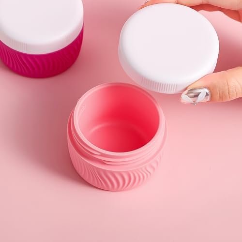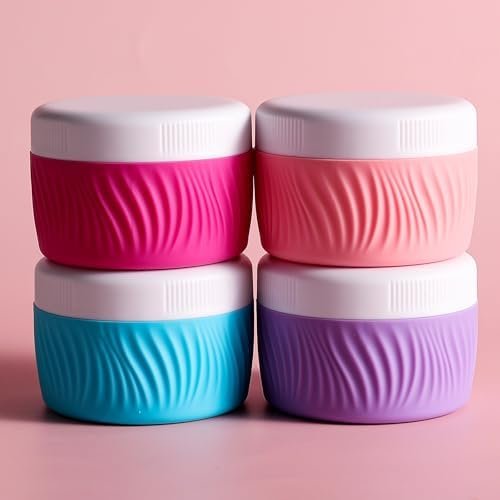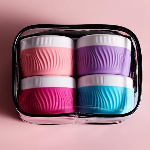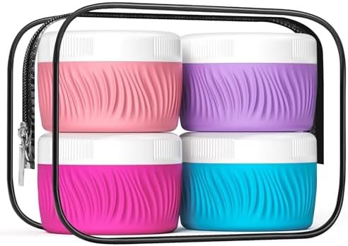 Travel Size Cosmetic Containers: The containers for toiletries includes 4 travel silicone cream jars are made, Different colors make it simple to identify which product is in each container.