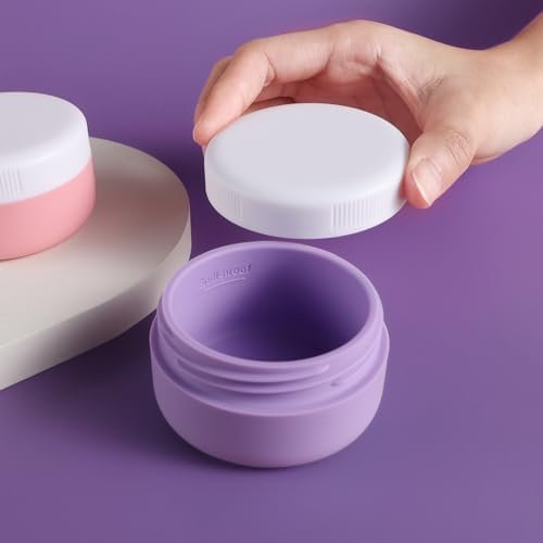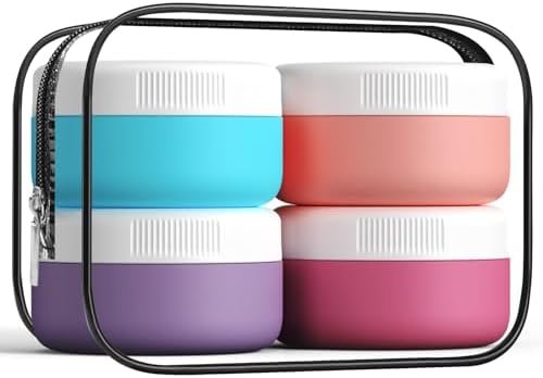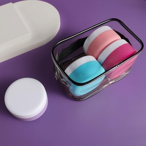 Travel Size Cosmetic Containers: The containers for toiletries includes 4 travel silicone cream jars are made, Different colors make it simple to identify which product is in each container.