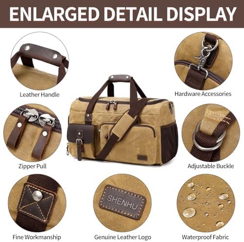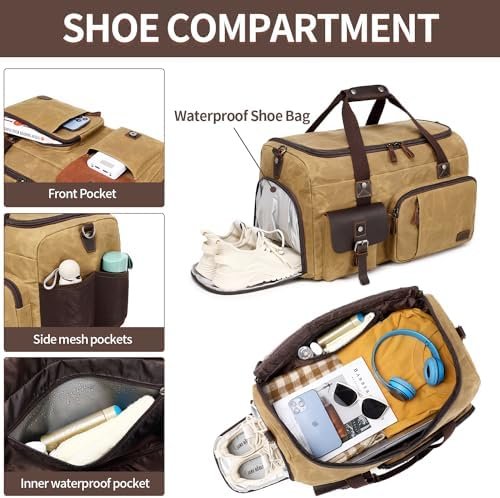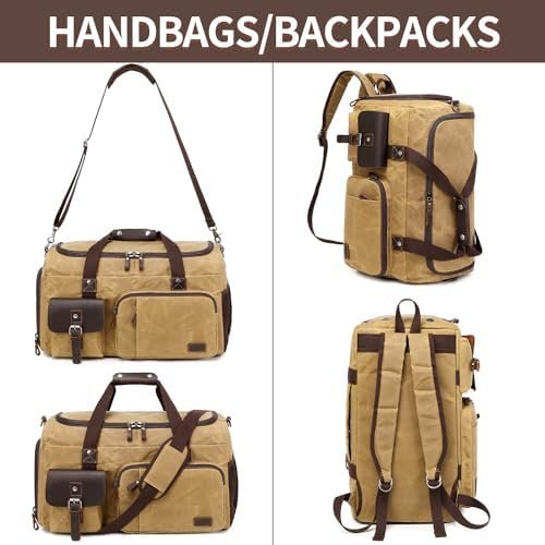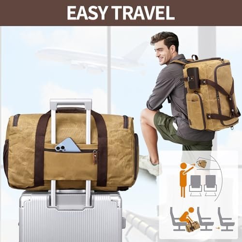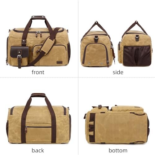 【Waxed Canvas Material】: This travel duffel bag is made of waxed canvas and genuine leather materail. The high-density waxed canvas material allows for heavy duty, daily use. International travel or take it with you on a daily basis, to the edge of the world.