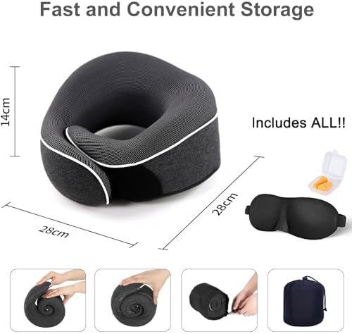 【Portable Travel Accessories】This travel airplane pillow can be rolled up into a storage bag. It is also equipped with eye masks and earplugs for travel. The chin pillow kit is suitable for traveling by airplane, train, car, and used in the office or recliner at home for a good rest.