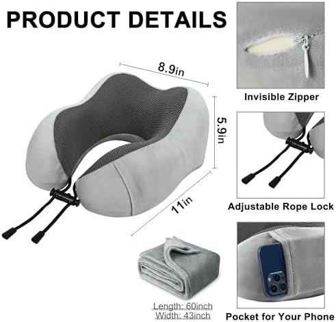 Perfect Neck Pillow Airplane: Made of high-quality memory foam with 5-second rebound technology for comfort and durability. An ergonomic hump design can better helps you keep your neck and head upright to alleviate pressure without causing any soreness during travel. Pockets on the side of the pillow can store your cell phones, which is practical.