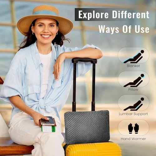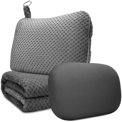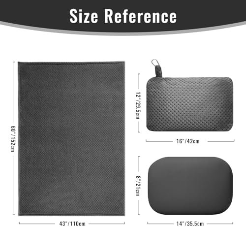 3-in-1 Travel Blanket and Pillow Set: This travel set includes an airplane blanket and a memory foam neck pillow with an inner pillowcase, which can be used at the same time. The travel blanket compact not only keeps you warm when needed but can also be folded and stored with the pillow in the plush storage bag, serving as a neck pillow or lumbar pillow, meeting your various travel needs.
