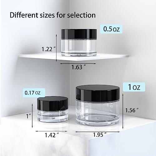 ✅Travel size and Easy to carry: 3 size 0.17/0.5/1 OZ travel containers, each of the volume container has 2 pieces with black and white lid, convenience for different use. Fit in your pocket, purse, handbag, back pack and luggage, small size allows them to go anywhere.