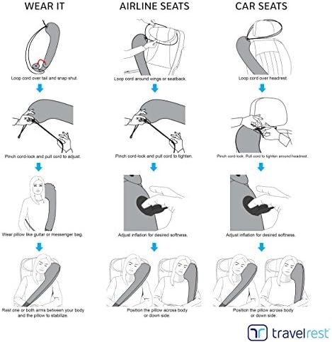 Travelrest – Ultimate Travel Pillow / Neck Pillow – Ergonomic, Patented & Adjustable for Airplanes, Cars, Buses, Trains, Office Napping, Camping, Wheelchairs (Rolls Up Small)