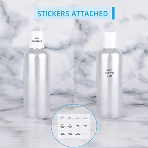 Effective Travel Accessory: These travel bottles are good for Hair Conditioner, Body Lotion and Facial Cleanser Bath Shower Gels, Hair Shampoo, Liquid Hand Soup, Liquid Soup and Facial Moisturizing Lotion; We have waterproof label stickers for all above stuff.