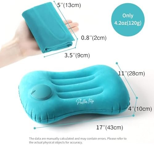 [𝗦𝗺𝗮𝗹𝗹 𝗦𝗶𝘇𝗲, 𝗕𝗶𝗴 𝗖𝗼𝗺𝗳𝗼𝗿𝘁] This inflatable pillow is both lightweight and compact, folding down to a mere 4×4 inches. It inflates into a comfortable pillow ideal for lumbar or neck support. Weighing less than 100g, it’s effortlessly portable, fitting into backpacks or pockets for on-the-go convenience.