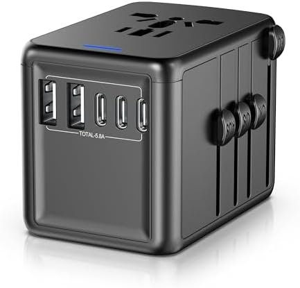 🌐 Universal Adapter with 5 USB Ports – Charges 6 Devices Simultaneously at Higher Speeds✈️ — This 6 IN 1 international plug adapter comes with More USB output, 3x USB-C Ports(3.0A) plus 2x USB-A ports(2.4A) total max 5.8a, and multi AC Sockets. Able to intelligently identify the current of your devices and fast charge them, compatible with iPhones, earbuds, iPads, kindles, phones, laptop, Nintendo Switch, tablets, cameras, accessories, power bank,mini CPAP, etc. Perfect for whole family and group use. Adaptors also can be used on a cruise. It is the international travel must haves and great gifts for men women who travel a lot.