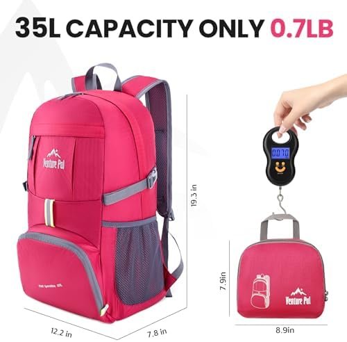 LIGHTWEIGHT and ROOMY. Fold the backpack into its own pocket and unfold it when you reach your destination. To avoid overweight charge, simply unfold from your checked bags and use it as a carry on for your excess baggage