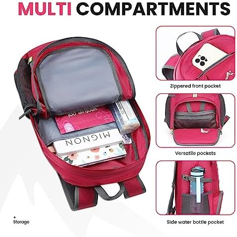 COMFORTABLE. Breathable mesh shoulder straps with plentiful sponge padding help relieve the stress from your shoulder. The length of the shoulder straps is adjustable. The chest strap with a whistle buckle help you lock your backpack in place