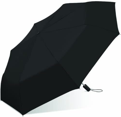 The Weather Station Rain Umbrella is designed for comfort, convenience, and durability to keep you warm and dry no matter what the weather may be. The compact design of the umbrella makes it easy to store in your purse, briefcase, backpack, or car. The waterproof and windproof polyester umbrella cover will provide shelter from the storm with a 42 inch arc of coverage. The water proof rubber handle makes it effortless to grip and hold firmly, and a helpful wrist strap at the end of the handle allows for easy hands-free carrying. An auto open and close button on the umbrella allows you to easily click the umbrella open so that you don’t have to worry about fussing with it during rainy weather. Perfect for any hike or commute, this compact umbrella is an ideal size for one person, but big enough to squeeze in a friend who didn’t have the good sense to bring their own Weather Station umbrella.