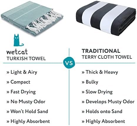 QUALITY YOU CAN FEEL: Who wants a stiff, scratchy Turkish beach towels? At Wetcat, our fabric is prewashed for an unbelievably soft texture. Made in Turkey with OEKO-TEX certified natural dyed yarn, our decorative Turkish towels are safe for you and for the environment.