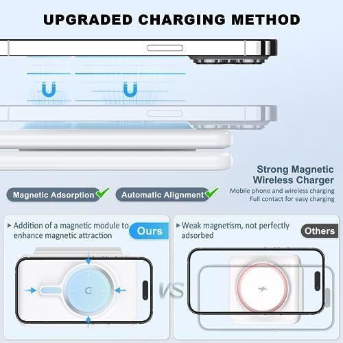 Fast Charging: This product features high-quality strong magnets that ensure easy alignment with the wireless charging coil of the smartphone, resulting in a fast and stable charging experience.Our charger station adopts intelligent protection technology to provide temperature control, overvoltage protection, short circuit protection, overcurrent protection to ensure safe and fast charging.