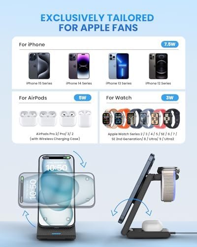 🔗【3 in 1 Wireless Charger】If you’re an Apple aficionado with an Apple Watch, iPhone, or AirPods, this apple charging station is an absolute must-have.The charging station for multiple devices, support charging iPhone, iwatch, AirPods simultaneously. It suitable for all iPhone 12-16 series. Compact size, well built, fast charging, space saving, exactly what you need!