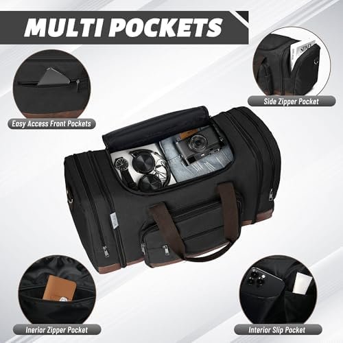Multiple Compartments: Stay organized with the Wolhbege Duffle Bag’s multiple compartments, including front zipper pockets, interior slip pocket, interior zipper pocket, and side zipper pocket. This canvas duffle bag keeps your essentials neatly arranged, making it an excellent travel bag, gym bag, or weekender.
