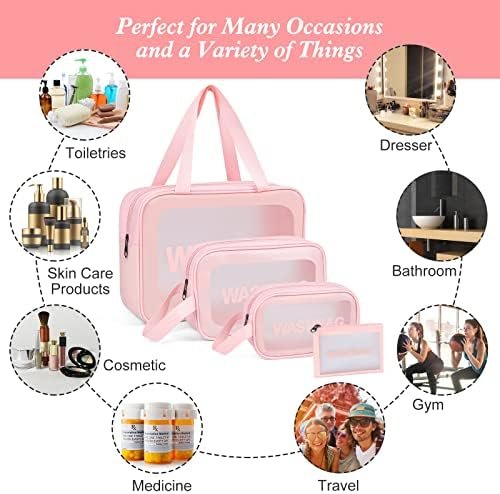 SUPERIOR MATERIAL and SMOOTH ZIPPER : These travel toiletry bags are made of lightweight PU material,durable,and waterproof. Design with translucent material, which is dirt resistant and easy to clean; also you can see what is stored. Every travel makeup bag is designed with one smooth zipper; convenient to pack and easy to take