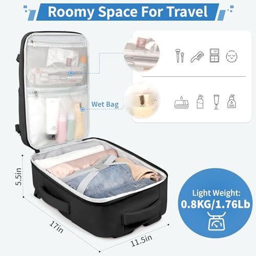 Flight Approved Carry on Backpack: The TSA backpack for travel school measures 17*12*8 inches and weighs 0.8 kg(1.76 lbs). This travel backpack for women men traveling features a 180 degree zipper closure to help you pass through security check quickly, compliant with airline carry-on requirements. Can be a personal item travel bag fits overhead bin or under the seat and save on paying any extra baggage fees