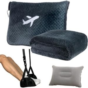 Travel in comfort with the Ultimate Travel Blanket & Pillow Set. This ultra-soft, 100% polyester flannel blanket is made of 350gsm thickness material, providing superior warmth and durability for your adventures near or far. Measuring a spacious 63” x 43”, there’s plenty of coverage to keep you cozy on airplanes,…